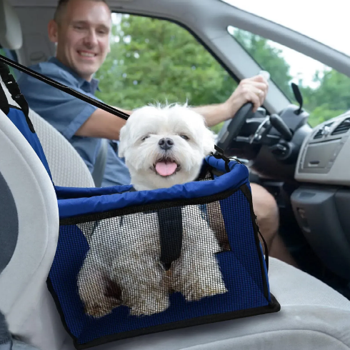 Стильное автомобильное сиденье-переноска Derby Bestopet Blue предназначено для удобной и безопасной транспортировки собак и кошек в салоне автомобиля. Изготовлен из высококачественной ткани Oxford, она сочетает износостойкость, водонепроницаемость и вентиляцию благодаря боковым сетчатым вставкам, обеспечивающим постоянный приток воздуха. Модель оснащена регулируемыми ремнями, позволяющими надежно закрепить сиденье на переднем или заднем сиденье авто, а также внутренним ремешком для фиксации поводка – это предотвращает случайное выпрыгивание животного во время движения. Для удобства владельца предусмотрен карман на молнии, где можно хранить игрушки, лакомство или гигиенические аксессуары. Компактная складная конструкция позволяет быстро установить или снять сиденье, а после поездки удобно сложить его для хранения, не занимая много места.