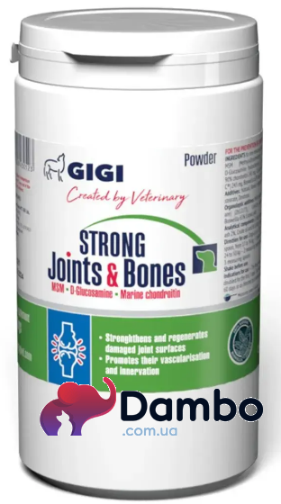 GiGi Strong Joints & Bones Powder – это витаминно-минеральный комплекс в удобной порошковой форме, предназначенный для профилактики и комплексного лечения заболеваний суставов у собак, особенно крупных и активных пород. Формула препарата разработана для укрепления хрящей, суставов и связок, поддержания оптимального количества синовиальной жидкости, а также для уменьшения воспаления и боли в случае дегенеративных или ревматических процессов. Благодаря сочетанию биодоступных компонентов, комплекс способствует более быстрому восстановлению после травм и оперативных вмешательств, улучшает подвижность и выносливость собак.