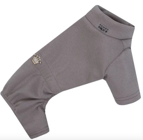 Этот бежевый костюм – воплощение уюта и стиля, идеально подойдет для прогулок в сухую погоду или комфортного отдыха дома. Элегантный принт с короной подчеркнет особый статус вашего хвостика, а мягкий трикотаж подарит ощущение второй кожи.