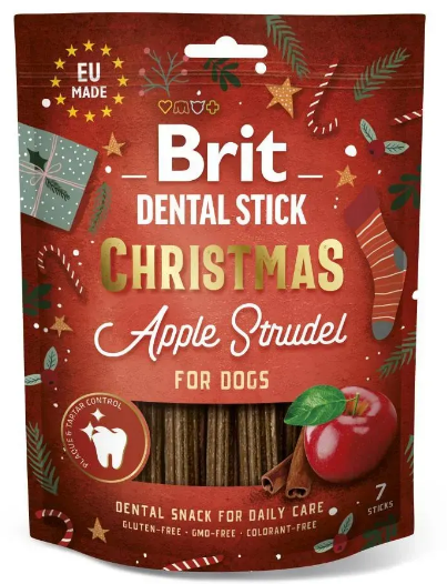 Если вы думали, что рождественская магия – это исключительно о глинтвейне, елке и Home Alone на фоне, то ваш пес сейчас точно поправит вас. Brit Dental Stick Christmas Apple Strudel дарит тем же вайб праздники, только в формате хрустящей палочки. Эти снеки сочетают вкус, функциональность и немного праздничной атмосферы. Аромат яблок и корицы звучит так, будто где-то рядом печется штрудель, а функциональные ингредиенты работают в пользу пищеварения и чистых зубов.