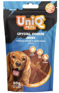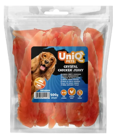 Вяленое куриное мясо UniQ PETS — это вкусное и полезное лакомство, созданное специально для поддержания здоровья и развития вашей собаки. Благодаря разнообразным текстурам это лакомство стимулирует обонятельные и вкусовые рецепторы, способствуя сенсорному развитию любимца. Продукт изготовлен из натуральных ингредиентов, что делает его безопасным даже для маленьких собак и позволяет использовать в качестве здорового перекуса в любом возрасте. Его также можно добавлять в рацион собак, которые придерживаются BARF-диеты, как полезную альтернативу сырым продуктам. Вяленое куриное мясо рекомендовано ветеринарами как часть здорового питания, ведь оно сочетает в себе пользу, вкус и качество в каждом кусочке.