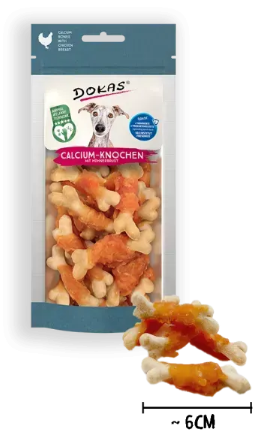 Вкусные кальциевые косточки Dokas с натуральной куриной грудкой – полезный перекус для сильных костей и здоровых зубов.