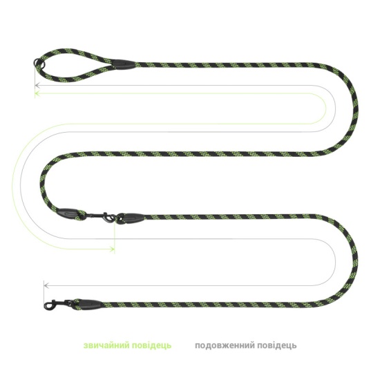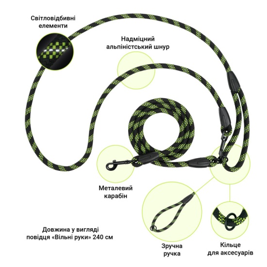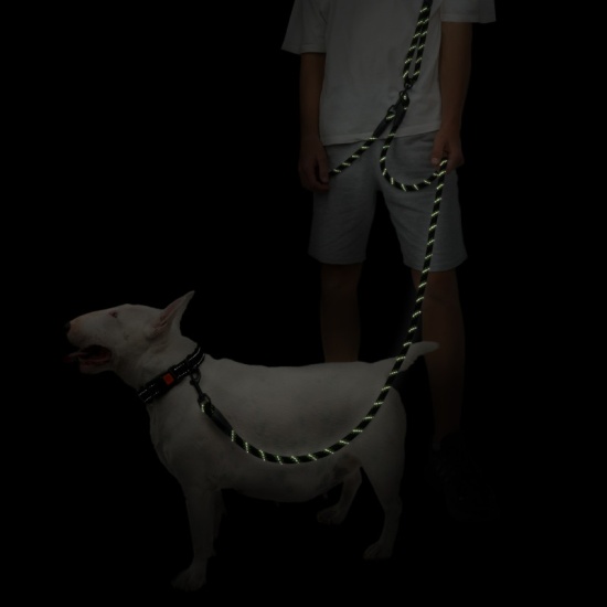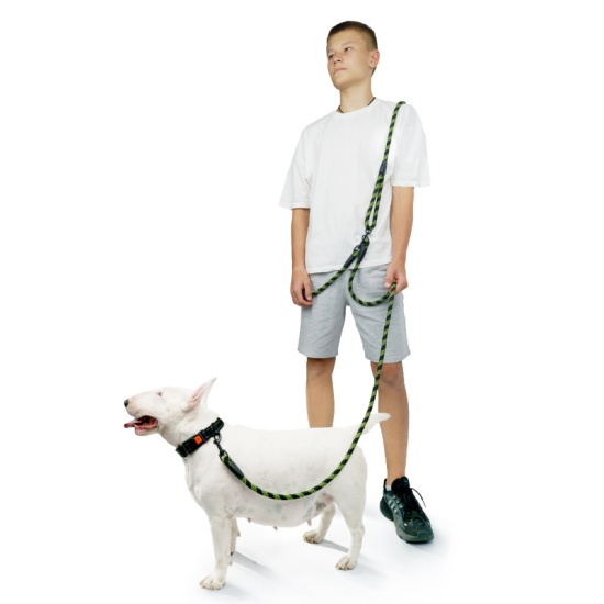 Основа — сверхпрочный нейлоновый альпинистский шнур, выдерживающий силу даже самого амбициозного пса, решившего внезапно пойти за кошкой на скорости света. Плетение содержит светоотражающую нить, так что вечером вы будете оба светиться, как персонажи из киберпанка — и точно будете заметны на дороге. Ручка мягкая, нескользящая – чтобы вы не делали непристойных кульбитов, когда собака решит резко изменить курс. Металлический карабин – классический вариант для надежности и безопасности.