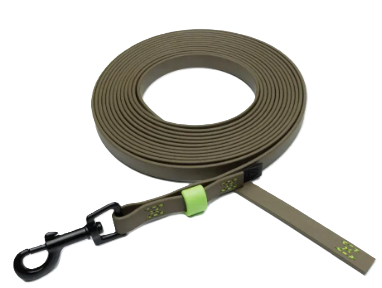 Созданный для тех, кто любит активные прогулки, трекинг и отработку команд на дистанции. Эта модель легкая, почти не убиваемая и не боящаяся ни одного приключения — от мокрых лугов до прыжков в пруд. Двухцветный дизайн не просто красив, но и заметен издалека, поэтому собаку легко отслеживать даже в динамических тренировках. Материал BioThane® – король среди технических лент: выглядит как премиальная кожа, но при этом веганский, водонепроницаемый и очень крепкий. Он не впитывает влагу, не тянется, не натирает и не теряет цвет. Даже после купаний в реке достаточно просто сполоснуть поводок водой – он высыхает через минуты. Это идеальный вариант для собак, которые любят свободу передвижения, но должны быть под контролем. А для тренировок на больших дистанциях и работы над возвращением к владельцу просто мастхев.