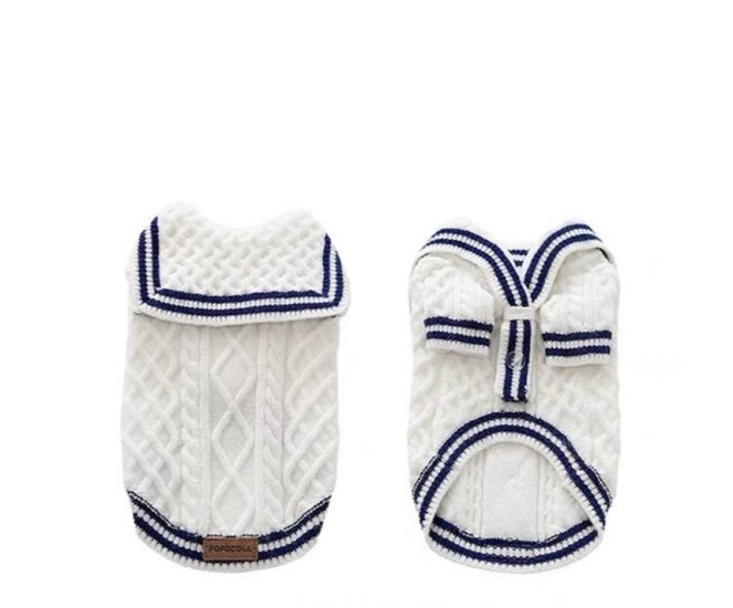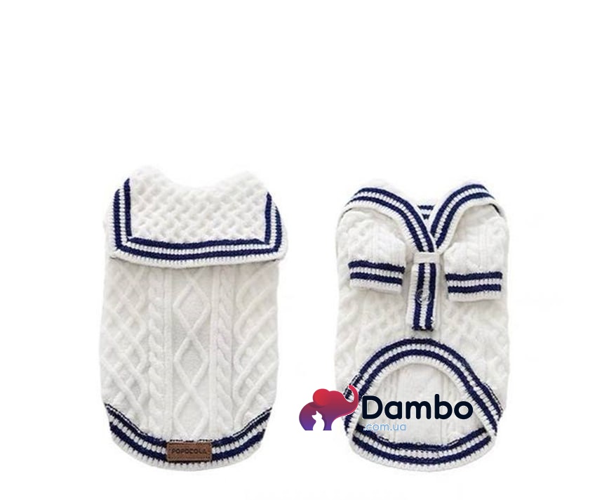 Свитер POPOCOLA в морском стиле из мягкой трикотажной ткани. Белый с синим кантом, удобный и теплый, не сковывает движения. Подходит для малых пород собак и кошек.