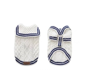 Уютный свитер в морском стиле – это стильное и практичное дополнение гардероба вашего любимца. Изготовлен из мягкой трикотажной ткани с рельефным узором, обеспечивает комфорт и тепло в прохладную погоду, не ограничивая движений. Белый цвет с синим кантом создает аккуратный и элегантный вид, а воротник и декоративный бант придают особый шарм. Свитер легко надевается через голову и удобен в носке даже во время активных прогулок.