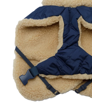 Зимняя попона для собак, сочетающая тепло, комфорт и стиль. Наружный слой из лазерно прошитого полиэстера защищает от ветра и легкой влаги, а внутренний слой из материала Sherpa нежно обволакивает тело, как теплый плед. Регулируемые элементы и отверстие для шлейки делают ношение удобным, а использование переработанных материалов делает ее экологичной.