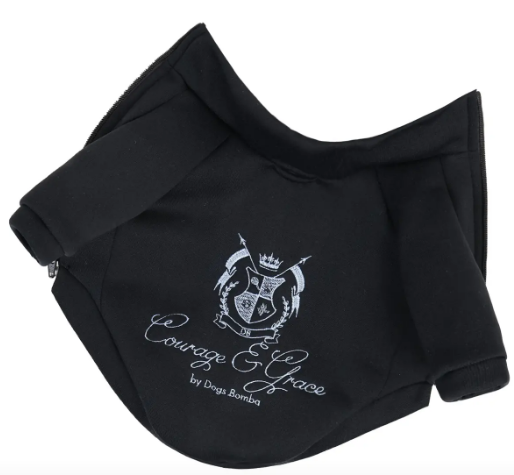 Толстовка DogsBomba «Кураж» – мягкая и теплая трехниточная ткань с начесом для комфортных прогулок. Имеет стильную вышивку на спине, молнию на животе и отверстие для поводка. Унисекс-модель подходит для собак любого пола.