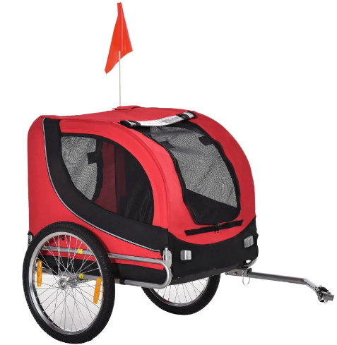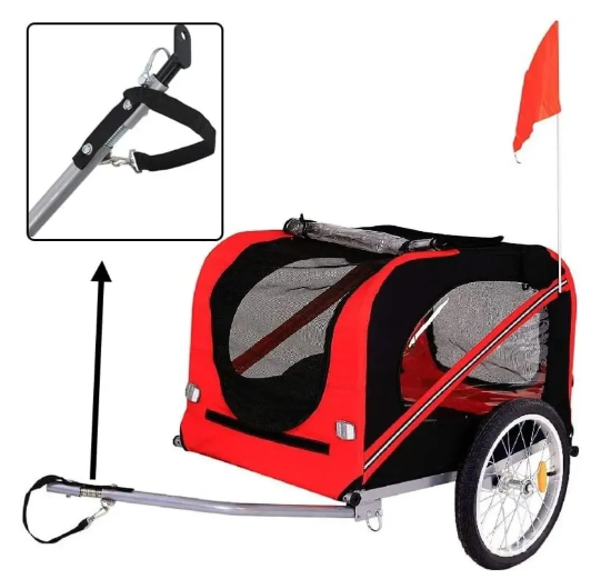 Прочная ткань Oxford 600D, стальная рама, большие 20-дюймовые колеса. Идеален для безопасных велопрогулок с собакой.