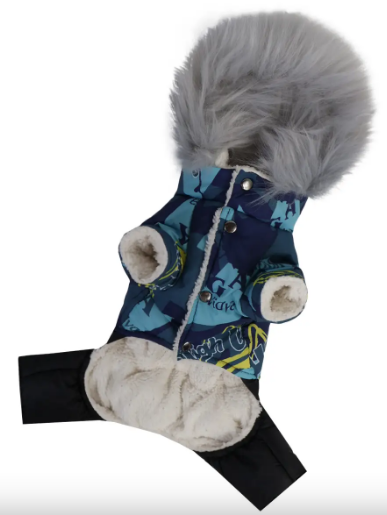Это теплая и стильная защита для вашего любимца в холодное время года. Благодаря сочетанию водоотталкивающей плащевки, утеплительного слоя из синтепона и мягкой подкладки из плюшевого меха, комбинезон отлично сохраняет тепло, не пропускает ветер и влагу и дарит максимум комфорта даже во время длительных прогулок.
