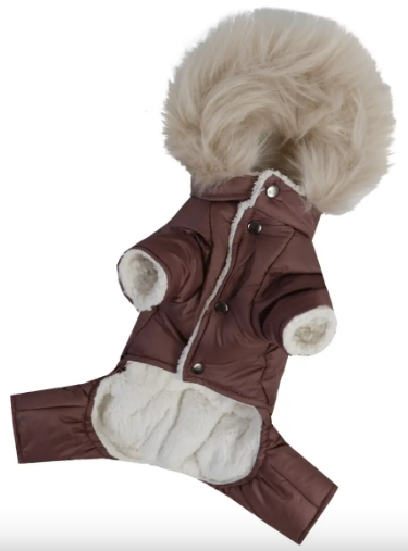 Это теплая и стильная защита для вашего любимца в холодное время года. Благодаря сочетанию водоотталкивающей плащевки, утеплительного слоя из синтепона и мягкой подкладки из плюшевого меха, комбинезон отлично сохраняет тепло, не пропускает ветер и влагу и дарит максимум комфорта даже во время длительных прогулок.