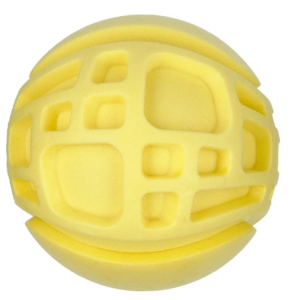 Яскравий жовтий м’ячик, створений для активних ігор і веселого проведення часу з вашим улюбленцем. Виготовлений із міцної та пружної гуми, він витримує інтенсивне кусання та стрибки, зберігаючи форму навіть після тривалого використання. Вбудована пищалка миттєво привертає увагу собаки, стимулює рухливість і допомагає витрачати надлишкову енергію. М’яч ідеально підходить для апортування, кидання та самостійної гри вдома чи на вулиці. Яскравий жовтий колір легко помітити у траві або на підлозі, додаючи позитиву та настрою під час гри.
