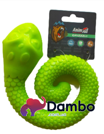 Жувальна іграшка AnimAll GrizZzly Змійка з двох матеріалів різної щільності та пискалками. Розвиває щелепи, допомагає очищати зуби й знижує стрес у собак.