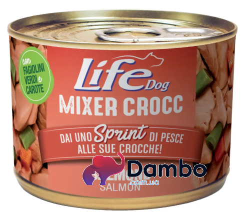 Life Dog Mixer Crocc з лососем — це вишуканий міксер класу холістик, створений для перетворення звичайного годування на корисне задоволення. Шматочки справжнього лосося вищого ґатунку у поєднанні зі свіжою квасолею та морквою в густому овочевому соусі не лише стимулюють апетит, а й збагачують раціон незамінними жирними кислотами Омега-3.
