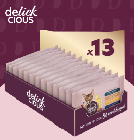 DELICKCIOUS™ "ПЛАСТІВЦІ З КРОЛИКОМ ТА ТРОПІЧНИМИ ФРУКТАМИ У ВЕРШКОВОМУ СОУСІ". ДОДАТКОВИЙ КОНСЕРВОВАНИЙ КОРМ ДЛЯ ДОРОСЛИХ КОТІВ.
