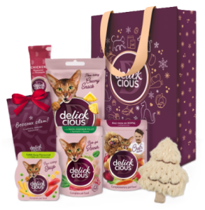 Подаруйте пухнастику святковий настрій з його улюбленими бестселерами в подарунковому наборі Delickcious. Delickcious! Не просто їжа, а справжнє різдвяне вау-лизь!
