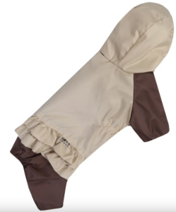 Цей милий дощовик створений спеціально для чотирилапих модниць, які навіть під дощем хочуть виглядати чарівно. Модель має акуратні рюші, що додають образу ніжності та елегантності, а продуманий крій забезпечує комфорт і свободу рухів. Виготовлений із водовідштовхувальної плащівки, дощовик надійно захищає від дощу, бруду та вітру. Усередині — підклад із тієї ж водостійкої тканини, що допомагає зберегти сухість навіть під час затяжної негоди. Закривається на зручні кнопки на животику, має капюшон та отвір для повідця, тож підходить для прогулянок у будь-яку погоду. Закритий животик забезпечує додатковий захист від вологи та холоду.