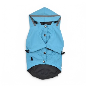 Стильний блакитний дощовик Pet&Co захищає собаку від вологи та бруду, має зручні кнопки на животику, регулювальні резинки, рефлективну стрічку на капюшоні й роз’єм для шлейки. Легкий, практичний і ідеальний для прогулянок у будь-яку погоду.