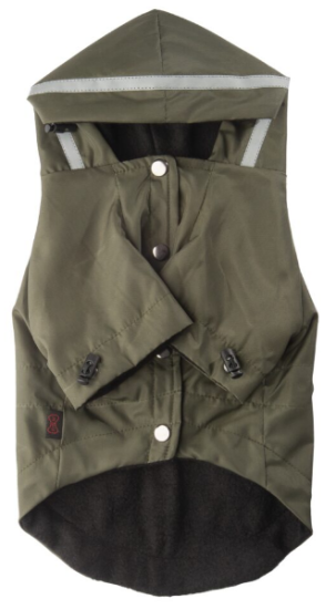 Стильний, тепленький дощовик Pet&Co захищає собаку від вологи та бруду, має зручні кнопки на животику, регулювальні резинки, рефлективну стрічку на капюшоні й роз’єм для шлейки. Легкий, практичний і ідеальний для прогулянок у будь-яку погоду.