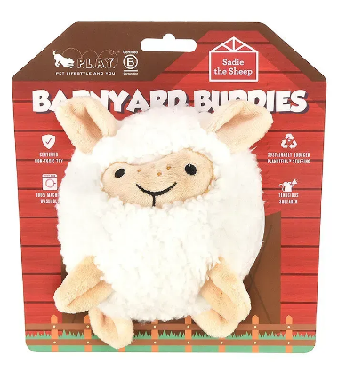 Barnyard Buddies – Sadie the Sheep Pet Play — мила вівця з колекції P.L.A.Y., яка приносить маленьку ферму радості прямо вашому чотирилапому другу. У колекції також є коник Harley, поросятко Paul, корівка Cole, качечка Dana та півник Ryan. Кожен персонаж має свій характер, унікальну текстуру та звук, що робить гру цікавою та захопливою для маленьких і середніх собак. Іграшка створена для безпечних обіймашок, активних ігор та розвитку нюху: всередині — пищалки та хрусткі елементи, які утримують увагу вашої собачки надовго.