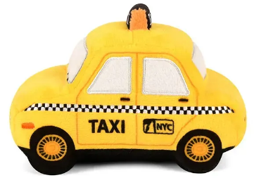 Іграшка New Yap City Taxi з колекції Canine Commute – м’яке плюшеве таксі з пищалкою. Безпечна, екологічна та стимулює гру й активність собак.