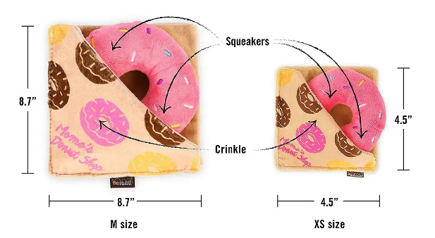 Плюшевий пончик із пищалкою та шурхотливими елементами для інтерактивних ігор. М’який, безпечний і довговічний, з PlanetFill® наповненням із перероблених пляшок та AZO-free барвниками. Підходить для всіх активних і стильних собак.