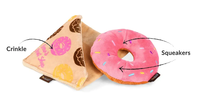 Колекція Pup Cup Cafe від P.L.A.Y. перетворює гру вашого улюбленця на справжню «кавову пригоду». Іграшки у вигляді пончиків, кавових напоїв та круасанів створені для активних ігор, обіймашок і веселих моментів вдома. Doughboy Donut — стильний, інтерактивний та безпечний десерт для вашого хвостика.