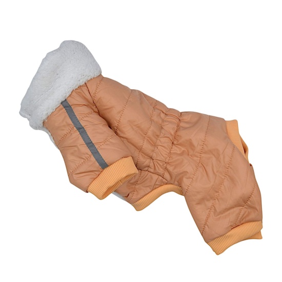 Теплий зимовий комбінезон Pet&Co з хутром і водовідштовхувальної тканини. Застібається на кнопки, має рефлекторну стрічку та отвір для повідка. Підходить для морозної погоди. Для вибору розміру виміряйте спинку, шию та грудку.