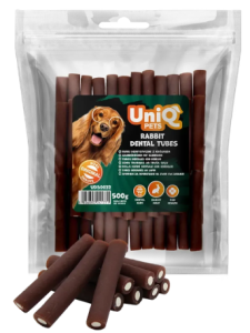 Подаруйте своєму цуценяті подвійне задоволення та ефективний догляд за зубами з зубними трубочками Rabbit Sandwich UNIQ PETS DOG SNACKS DENTAL. М’який зовнішній шар із кролячого м’яса обгорнутий навколо текстурованої абразивної серцевини, що допомагає очищати зуби, освіжати дихання та задовольняти природну потребу жувати. Ідеально підходить для собак з харчовою чутливістю та алергією на курку або яловичину.