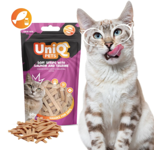 Подаруйте своїй кішці справжнє задоволення з UNIQ PETS SOFT SALMON STRIPS — м’якими смужками з добірного лосося, які поєднують чудовий смак і користь. Ці ласощі створені для підтримки здоров’я серця, очей та шкіри, адже містять таурин і омега-3 жирні кислоти — незамінні поживні речовини для кожного кота. Завдяки м’якій, приємній текстурі смужки легко жуються, тому підходять навіть для кошенят і старших кішок. Ідеальні для щоденного заохочення, дресирування або просто як прояв любові до вашого пухнастого друга.