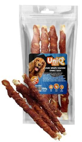 Побалуйте свого собаку преміальними паличками з качиної шкіри UNIQ PETS DOG SNACKS RAWHIDE 28 см – смачною, багатою на білок жувальною ласощею зі справжнього качиного м’яса, обгорнутого навколо високоякісної качиної шкіри. Ідеально підходить для цуценят та дорослих собак з харчовою чутливістю, які люблять смачно погризти.