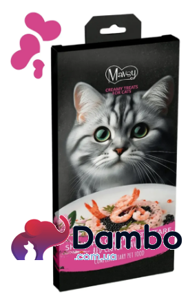 Mavsy Кремові ласощі — тартар з креветок і курки з червоною конюшиною та ікрою, створений для справжніх гурманів серед котів. Ніжна текстура й вишуканий смак курки та креветок з нотками ікри подарують вашому улюбленцю насолоду та енергію. Ідеально як щоденна смакота або бонус до раціону для блиску шерсті та здоров’я шкіри.