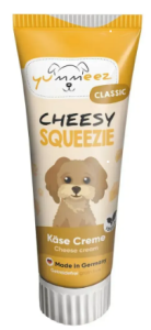 Yummeez Cheesy Squeezie — це ласощі, які працюють завжди: на тренуванні, вдома, у ветеринара або коли просто хочеться побалувати хвостатого без зайвих калорій і драми.