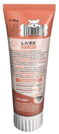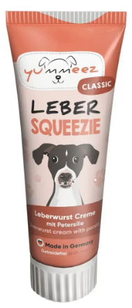 Yummeez Leber Squeezie — натуральні рідкі ласощі для собак зі смаком печінки у зручному тюбику. Це кремоподібний снек, який собаки просто обожнюють: м’яка текстура, насичений печінковий смак і максимум зручності для власника. Ідеально підходить для тренувань, інтерактивних ігор, килимків для лизання, а також як лайфхак для непомітного прийому ліків. Просто видавіть — і хвіст уже махає.