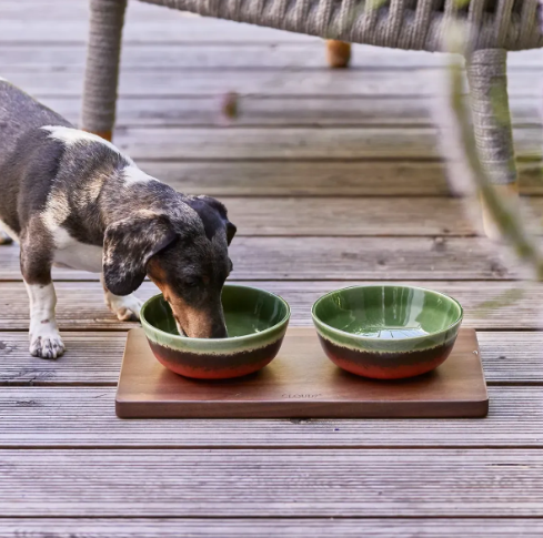 Дизайнерський набір для годування собак, що поєднує стиль і практичність. У комплект входять дві керамічні миски Annie з унікальною реактивною глазур’ю та підставка з мангового дерева — екологічного та міцного матеріалу.