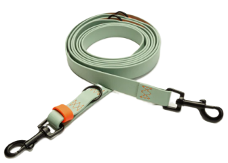 Довговічний, водостійкий повідець із BioThane® з довжиною до 2,5 м та можливістю використання в режимі hands-free. Матові металеві деталі й двоколірний дизайн роблять його стильним і зручним варіантом для активних прогулянок.