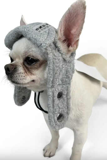 Тепла, стильна шапка з м’якої букле-вовни, яка захищає голову та вушка собаки від холоду. Підходить для різних порід і додає образу справжнього зимового вайбу.