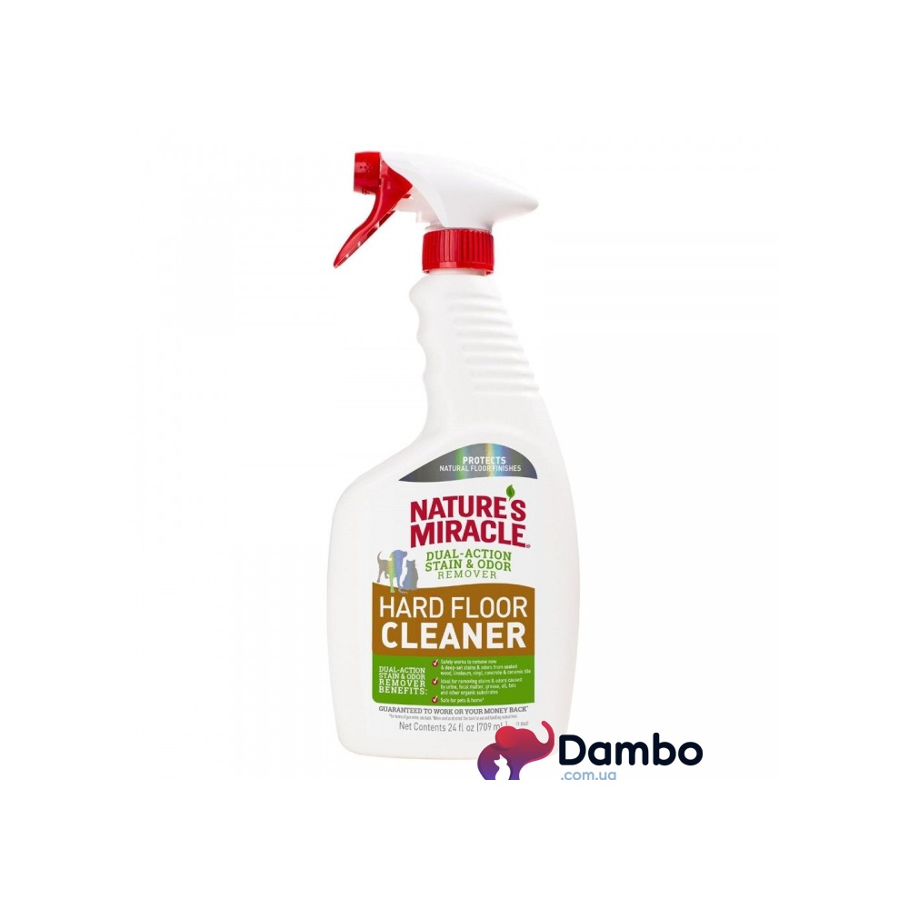 Засіб Nature’s Miracle Hard Floor Cleaner спеціально створений для ефективного видалення плям та запахів органічного походження від домашніх тварин: сечі, блювоти, фекалій, слини, крові, слідів трави та інших забруднень. Підходить для всіх видів підлогових покриттів, включно з паркетом та ламінатом, не пошкоджуючи поверхні.