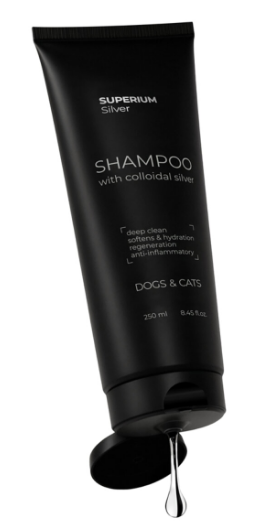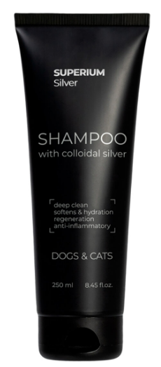 СУПЕРІУМ Сільвер – універсальний шампунь, що дбає про шкіру та шерсть вашого улюбленця. Колоїдне срібло зупиняє бактерії та грибки, а натуральні компоненти зволожують, заспокоюють і стимулюють ріст шерсті. Засіб м’яко очищає, додає блиску та забезпечує здоровий вигляд тварини.