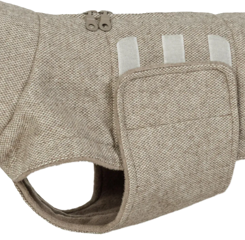 Тепле пальто з флісовою підкладкою та водовідштовхувальною вовняною тканиною. Спеціальний крій для такс із подовженою спинкою та зручними липучками. Не сковує рухів, добре гріє живіт і спину, має отвір для шлейки й легко переться.