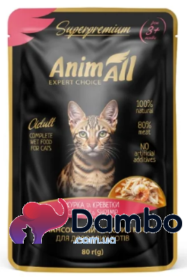 AnimAll курка з креветками — це не просто корм, а щоденний делікатес, який поєднує користь, смак і задоволення в кожному шматочку.